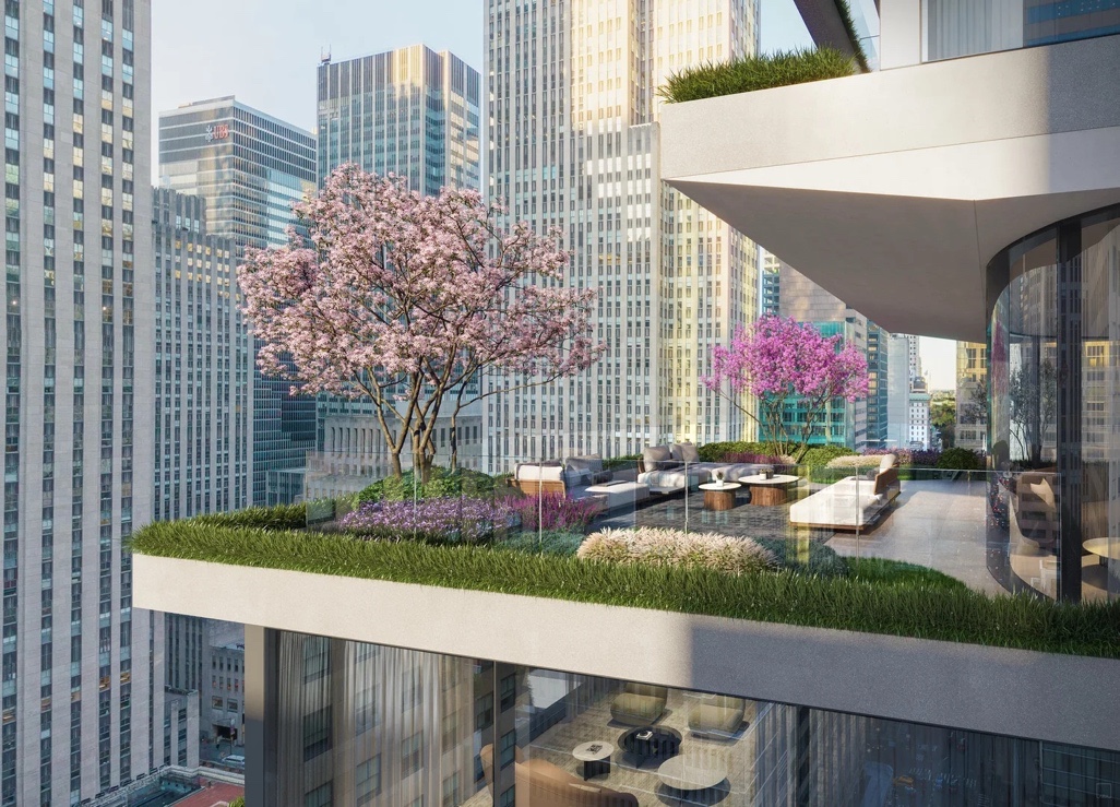Close-up view of one of the upper-level landscaped terraces; image courtesy of Rafael Viñoly Architects